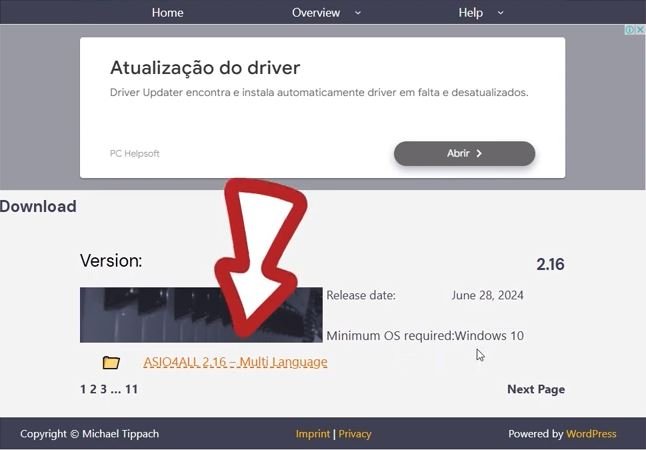 Para fechar qualquer anúncio que aparecer, clique em “close”, vai abrir a página de download, o Asio4all só pode ser instalado no Windows 10 ou versão superior como exemplo o Windows 11.