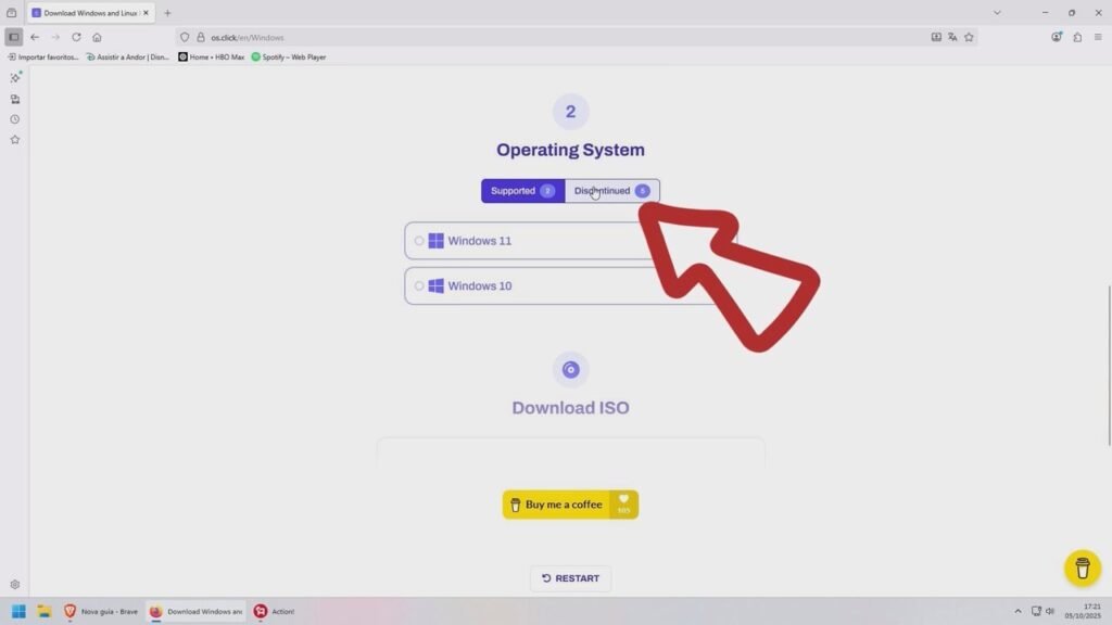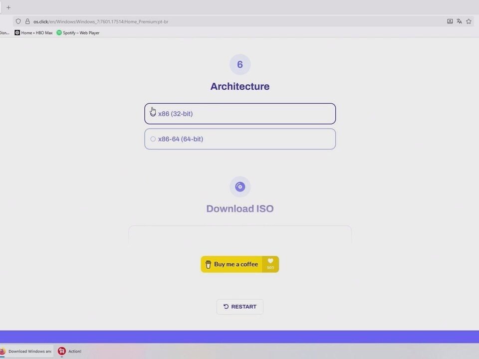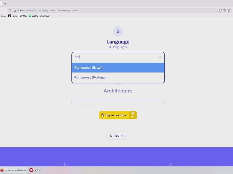 Acesse o site os.click, o site está em inglês e você pode mudar para francês, mas não se preocupe porque a versão de Windows que você pegar vai estar em português do Brasil.