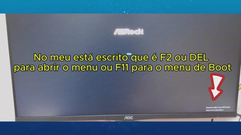 No computador, notebook ou tablet em que o Windows não estiver carregando, você precisa ligar ou reiniciar ele para aparecer a tela da marca onde em baixo vai estar em algum lugar dizendo qual botão do teclado você tem que apertar para acessar as opções da bios.