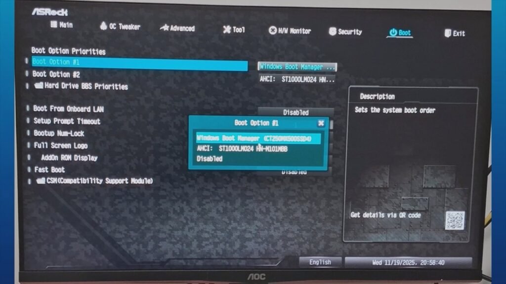 Vai ter uma seção que tem algo a ver com boot ao qual você pode determinar a prioridade do sistema para abrir o sistema operacional.