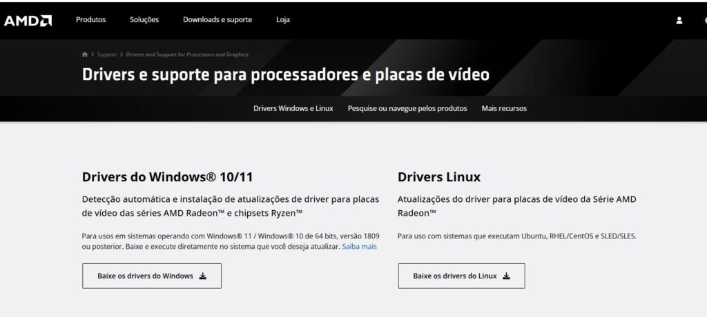 No meu caso eu vou clicar no site que é o AMD.com, ele vai me levar ao site oficial, nesse link que informei já vai numa página onde tem um download que vai automaticamente detectar os drivers correto para o seu se ele for da AMD.